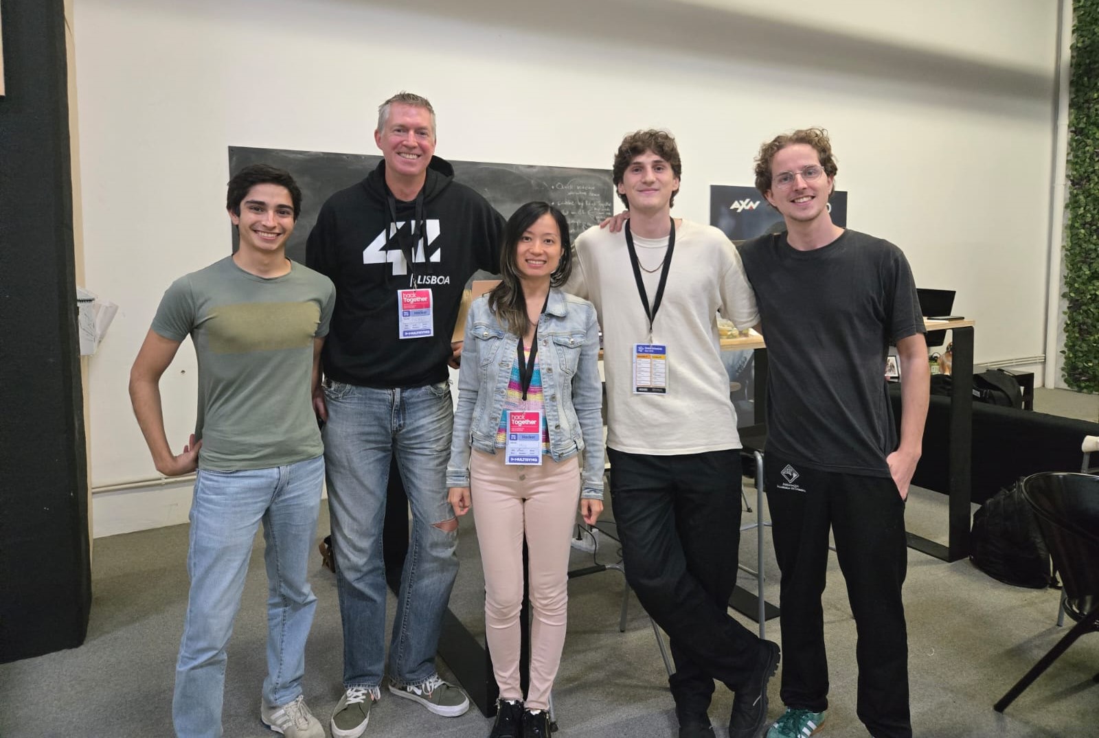 Last time I attended a Hackathon, I went together with three other people that I already knew. This time, I went solo, without a team (it was a bit scary). I made sure I arrived early so I could connect with a few other solo participants, and luckily it worked. I had a blast meeting and working with these people. Here's a photo of us on the second day of the event: