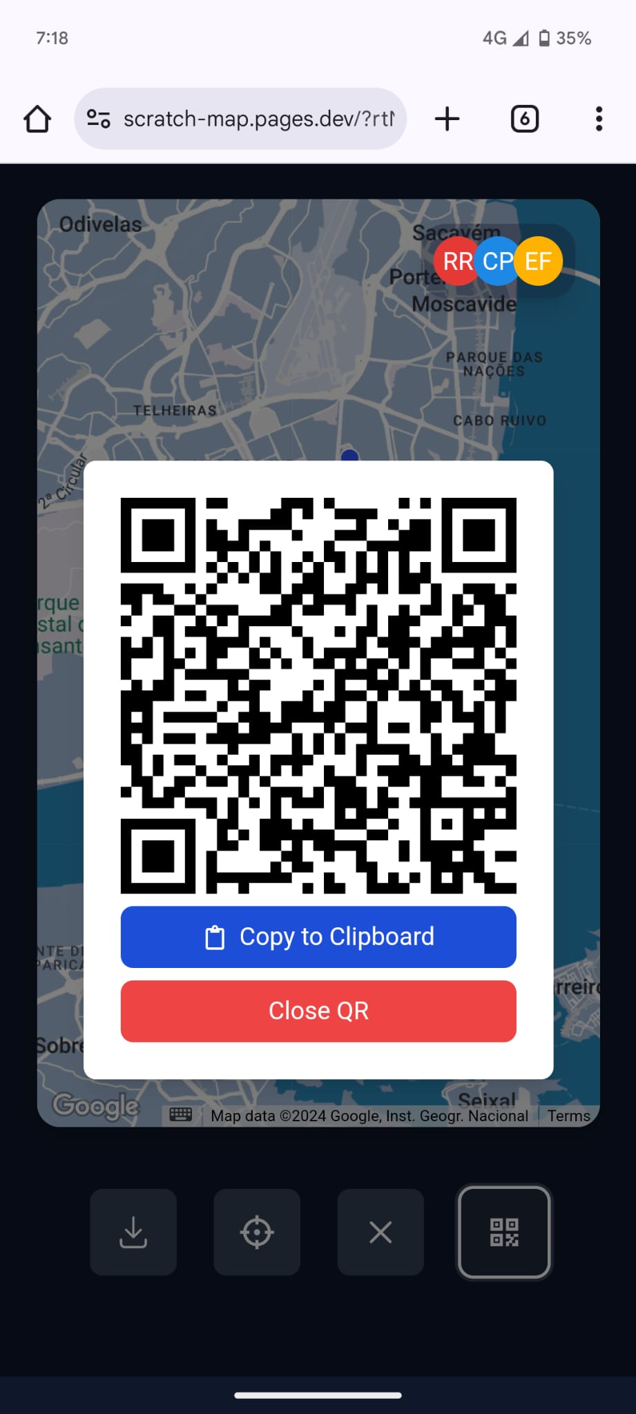QR code to share map with friends