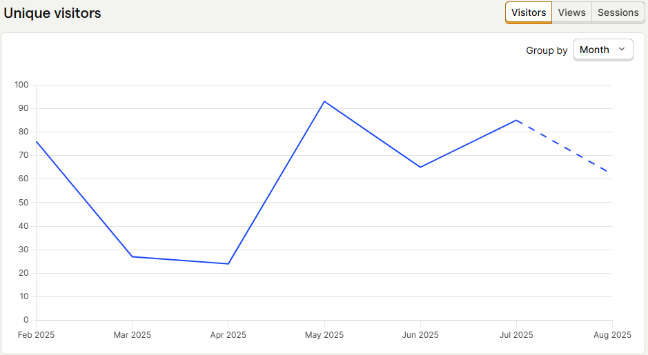 Given that this website is not necessarily moving mountains in traffic, I decided to look for alternatives that could track all the traffic within their free plan. And I found just that with Posthog, the service I'm using now. It's great, and it tells me some pretty basic stuff. Here's some stats on the last few months: I'm getting somewhere between 20 to 100 unique visitors each month.